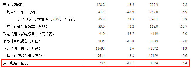 5月16日,国家统计局公布规模以上工业生产月度数据,4月份计算机、通信和其他电子设备制造业规模以上企业产值同比增长4.9%,主要产品产量中,集成电路当月生产259亿块,同比下滑12.1%,1-4月累计产量1074亿块,同比下滑5.4%,其他产品中,微型计算机设备当月生产3035万台,同比下跌16.8%,移动通信手持机产量1.27亿部,同比下滑1.6%。